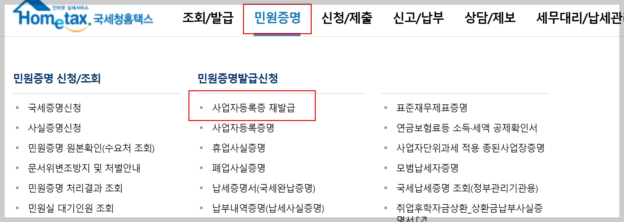 메인페이지 상단 카테고리를 보시면 "민원증명" 이라는 카테고리 보이실꺼예요. "민원증면" →"민원증명발급신청" →"사업자등록증 재발급" 클릭해 주세요. 그러면 로그인이 필요하다는 창이 뜨는데 저의 경우 간편인증으로 해서 로그인을 해주고 있답니다. 여러분께서 하고 계시는 방법으로 인증완료 후 로그인 해주시면 된답니다.