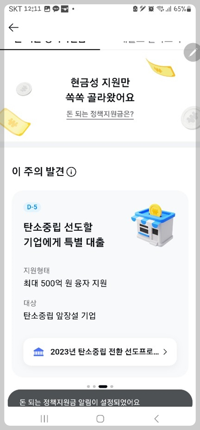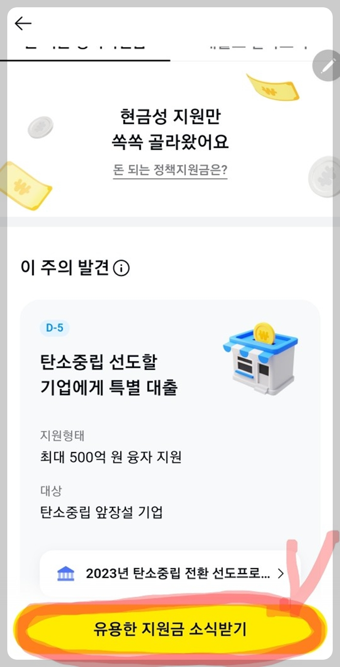 "현금성 지원만 쏙쏙 골라왔어요. 돈 되는 정책지원금은??"이라는 페이지가 뜨는데 하단으로 내려보시면, (유용한 지원금 소식받기) 버튼 클릭!!