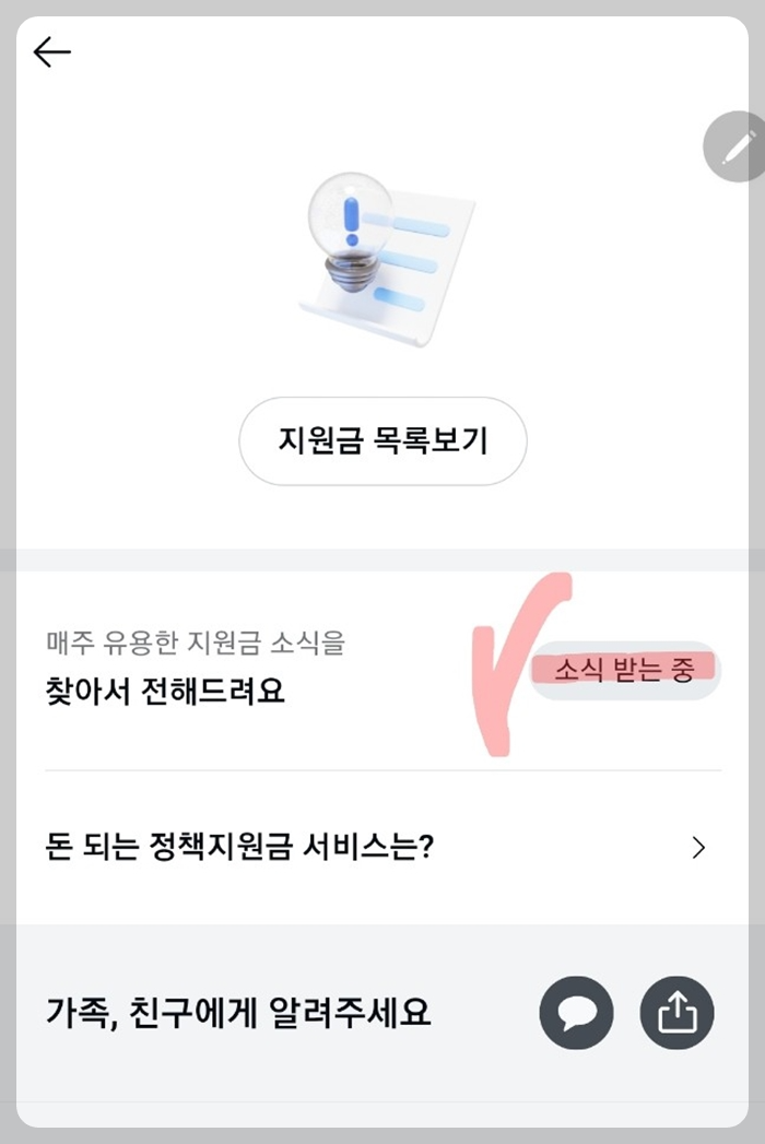 돈이 되는 정부지원금 알람 먼저 받아보는 방법 알림 받아보아요. (feat 카카오톡)