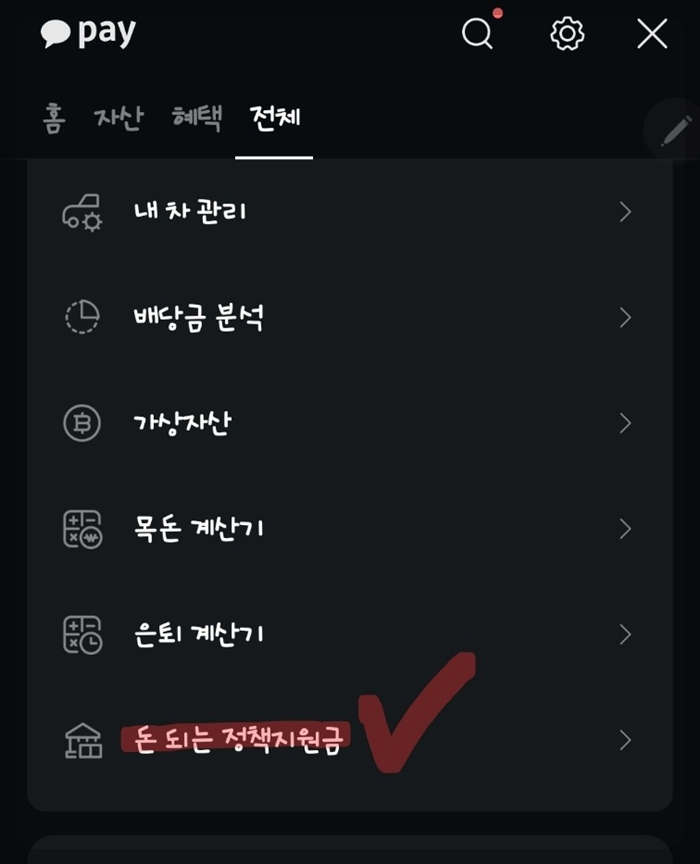 -알림 동의하고 카카오페이 담당자가 발견한 이 주의 지원금을 매주 받아볼 수 있다고 합니다.