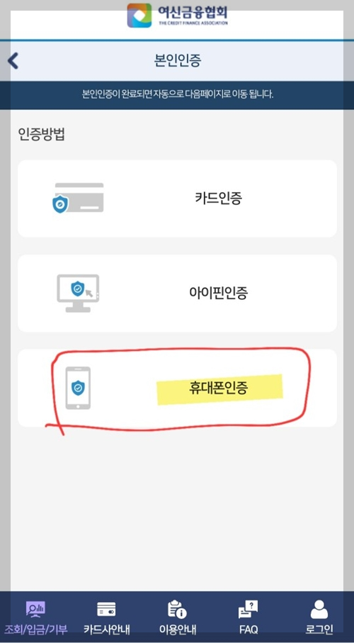 4. 본인인증 페이지로 넘어가면 (휴대폰 인증) 선택 클릭