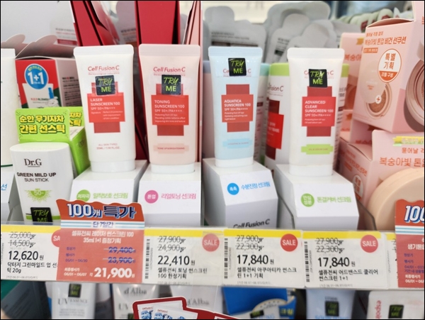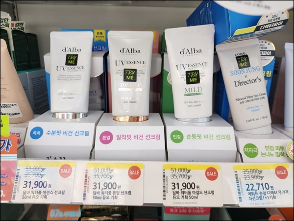 썬크림 제가 고민하고 있는 두 제품입니다. 하나는 [달바 워터플 톤업 선크림] 두번째는 [셀퓨전씨 토닝 썬스크린] 이렇게 두톤업라인으로 두 제품 테스트 해보았는데 둘다 너무 좋아요. 물론 손등에다가 해서 정확성도 조금 떨어지지만 톤업도 자연스럽게 되고, 촉촉한듯 하면서 보송해서 사용감이 좋았어요. 한참 고민하다가 결국 선택을 못했지요. 선택장애가 있는 저의 성격이 여기가 드러나네요. 조금더 고민해보고 올영세일 끝나기 전에 한번 더 방문해서 꼭 구매하려합니다.