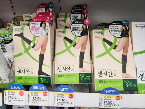 이건 [압박 스타킹]인데 제가 다리가 잘 붓는 스타일이라 집에 이런 종류의 압박 스타킹을 이용하고 있는데 꽤 괜찮아서 저희 엄마도 하나 사드리려고, 구매했답니다. 센시안에서 나온 의료기기 용품으로 나온거라 더 믿음이 가서 고민없이 구매했어요.