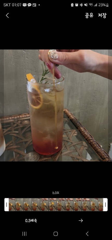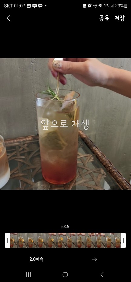 하단 좌측은 영상 속도를 설정할 수가 있는데요. 아래 사진은 0.5배속으로 설정한 영상이고, 두번째 사진은 1.0배속, 세번째 사진은 2.0배속으로 설정한 영상입니다. 이런 느낌을 낼 수 있어요.^^ 속도는 0.5/1.0/2.0 이렇게 3가지 배속으로 설정할 수 있으니 원하시는 배속을 선택해서 클릭해 주시면 된답니다.