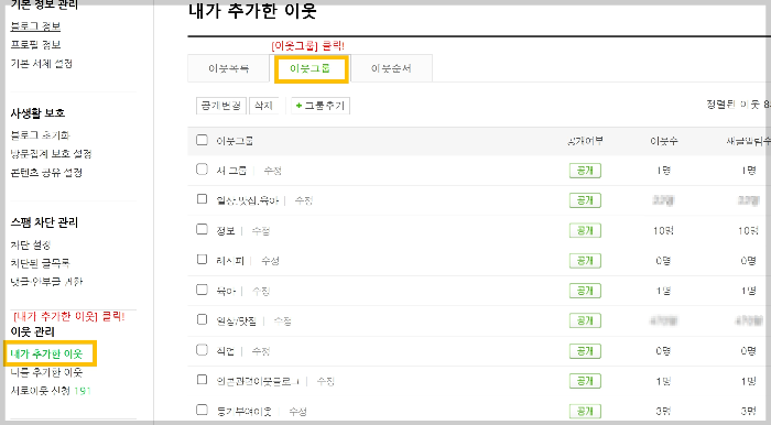 ※ 내가 추가한 이웃 비공개로 설정하는 이유