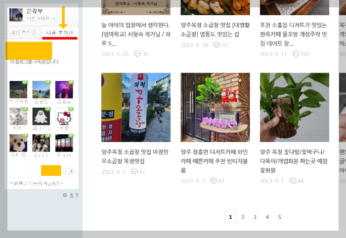 짜잔!!! 내 블로그 방문했을때 설정 전에는 [내가 추가한 이웃]이 먼저 공개가 되었었는데, 지금은 [나를 추가한 이웃]이 먼저 보여집니다.