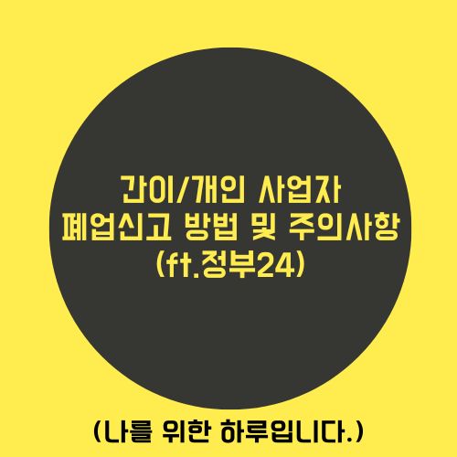 안녕하세요. 나를 위한 하루입니다. 예전에 파이프라인을 늘려보겠다는 거창한 꿈을 품고, 간이사업자를 만든적이 있었어요. 만든 사업자로 스마트스토어랑 인콘조달플랫폼을 시작했더랬죠. 하지만 세상에 쉬운거 하나 없다고, 쉽지가 않았어요. 뭐든지 사업자내고 시작하는 일은 초기비용이 들지 않는다고 해도 사업자를 발급받으므로써 나가는 세금들이 있잖아요?