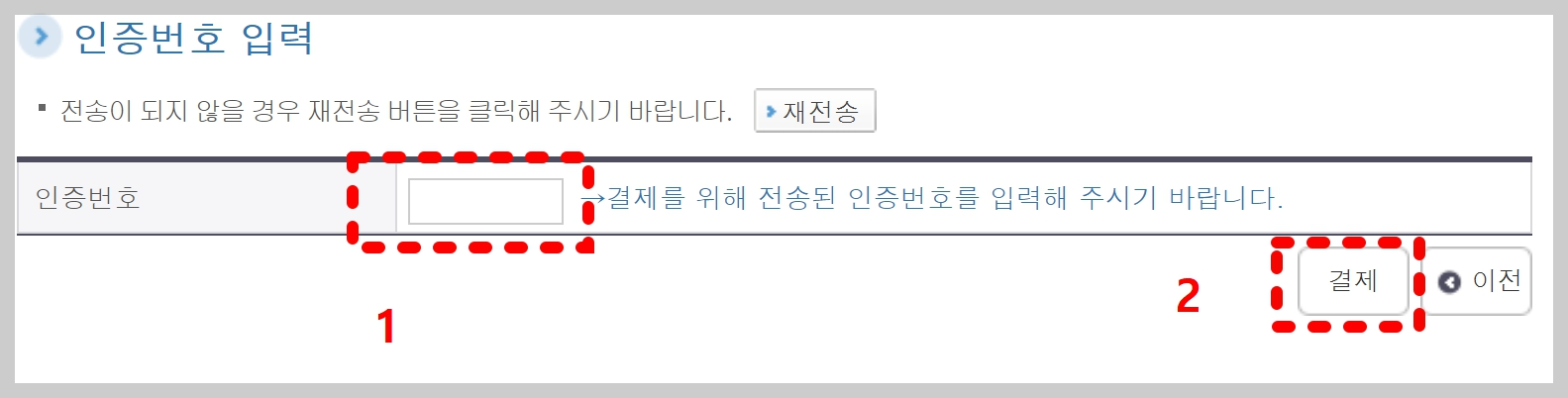 저는 휴대폰 인증을 했기 때문에 인증번호가 문자고 전송되었어요.