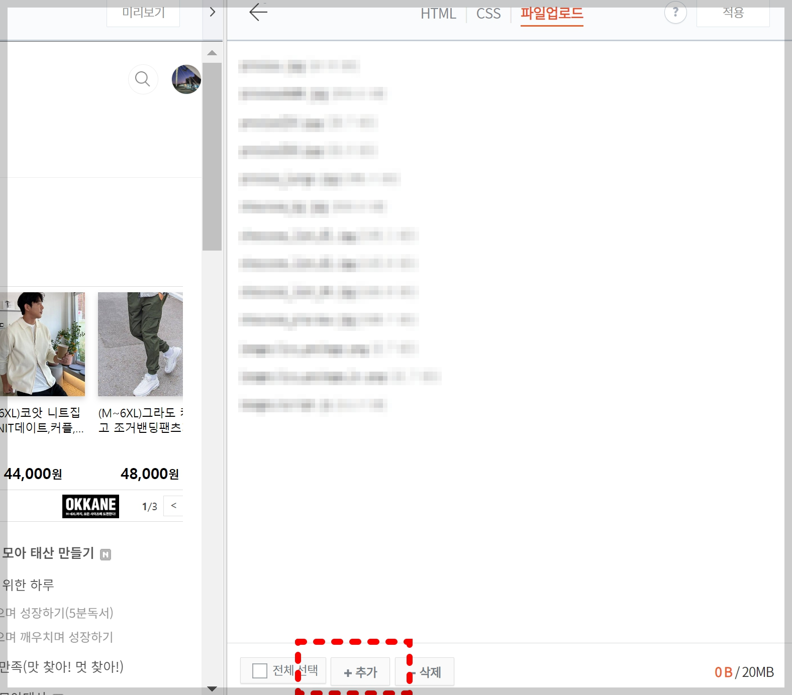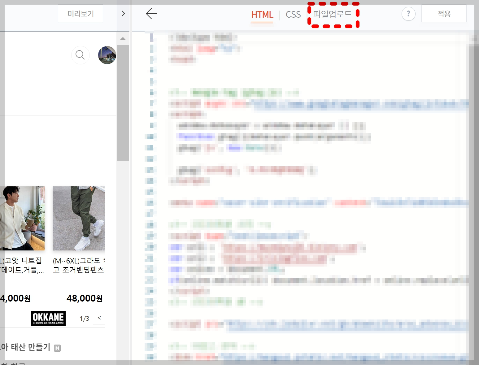 - 상단 중앙에 [ HTML / CSS / 파일업로드 ] 보이시죠?
