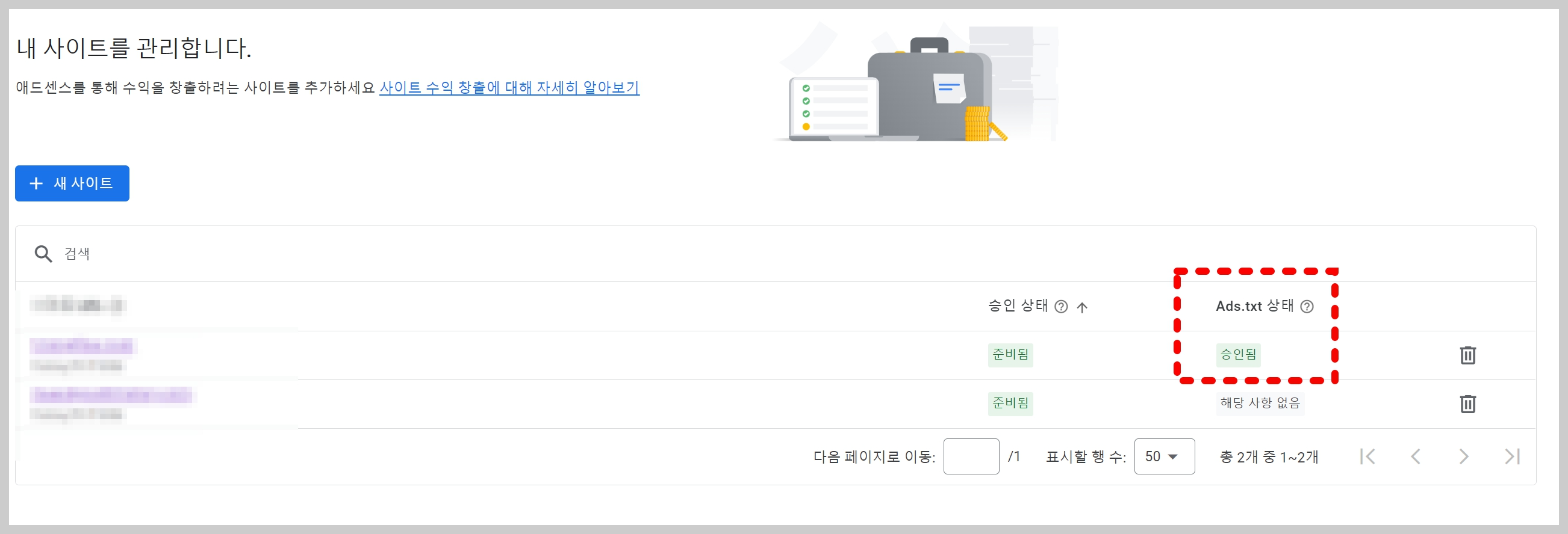 - 아까 [Ads.txt.상태에서 찾을 수 없음] 라는 문구가 뜬 문제가 되었던 사이트를 클릭해 주세요.