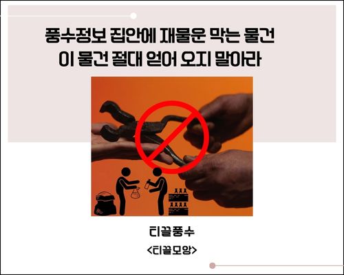 안녕하세요. 티끌모앙입니다. 오늘의 티끌풍수는 다른 사람에게 절대 얻어오면 안되는 물건에 대해 이야기를 나눠보려하는데요. 모든 물건에는 그 주인의 기운이 스며든다고 했는데요. 그렇기 때문에 물건에 따라 내 물건을 절대 남에게 주어서도 안되고 남이 쓰던 물건을 함부로 가져와서도 안되는데요. 잘못 들인 물건 하나가 집안을 불행하게 만들기도 하며, 또한 하는 일마다 잘 풀리지 않고 꼬여버리는 상황를 만들기도 합니다. 그래서 우리 풍수학에서는 무엇을 얻어오면 작더라도 그 댓가를 꼭 치르라는 이야기가 있으며, 그냥 얻어 와도 되는것이 있고, 반대로 절대 얻어 와서는 안 되는 것이 있다라고 말을 하고 있습니다. 지금부터 절대 얻어오면 안되는 물건에 대해 말씀드리도록 할께요. 오늘도 풍숭이야기 재미있게 읽어주세요.