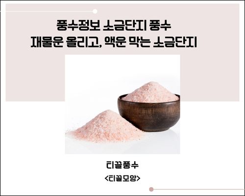 안녕하세요. 티끌모앙입니다. 오늘의 티끌풍수 주제는 소금단지 올바른 사용방법과 두는 위치에 대해 이야기 해볼건데요. 소금단지는 풍수에서 엄청 유용한 풍수소품입니다. 재물운, 건강운, 금전운등을 올려주면서 액운까지 막아준다고 하니 일석이조의 풍수소품이 아닌가 싶은데요. 준비물도 간단하고, 어렵지 않게 구할 수 있어서 쉽게 적용해 보실 수 있으실거예요. 오늘 말씀드리는 소금단지 활용법 재미있게 읽어보시고 한번 적용해 보셔서 우리 꾸독님들 집안의 모든 액운을 막으시고, 꾸독님들께서 바라는 소원 하나하나 다 이루어지시기 바라겠습니다. 그럼 바로 시작해 보도록 하겠습니다.