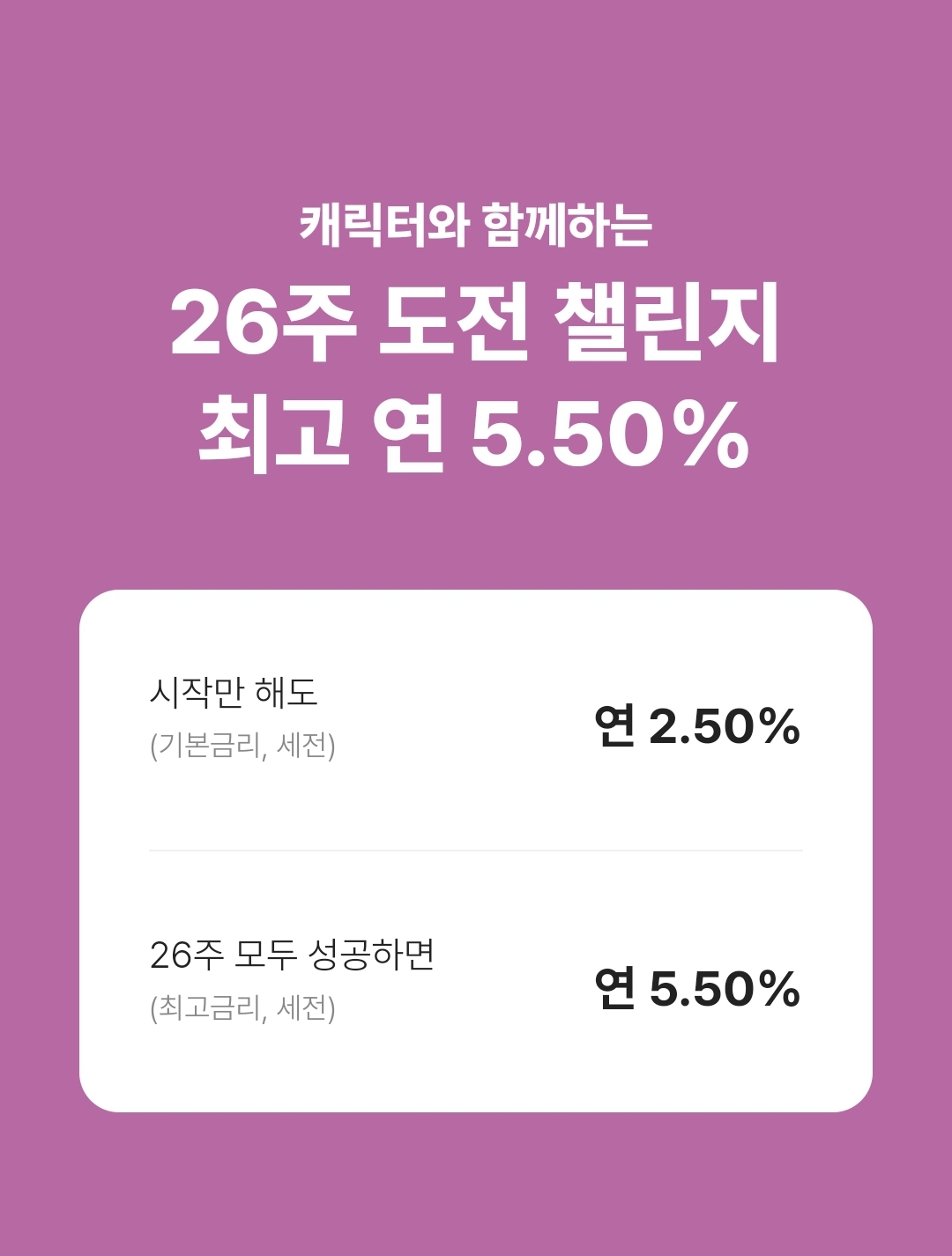 - 26주적금 서비스를 통해서만 입금이 가능하며, 그 외의 입금은 모두 제한됩니다.