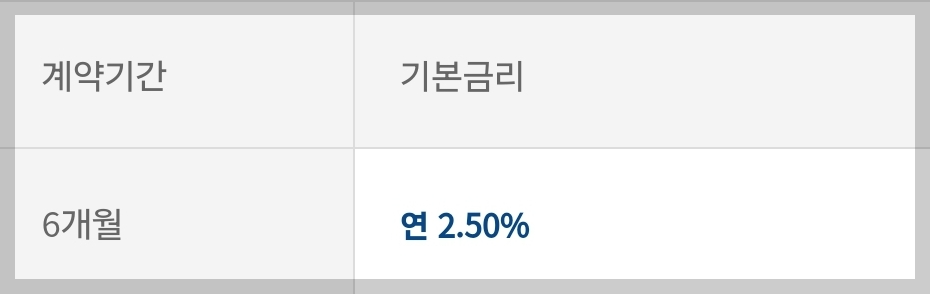 - 6개월 계약기간 기본금리 연 2.50% 입니다.