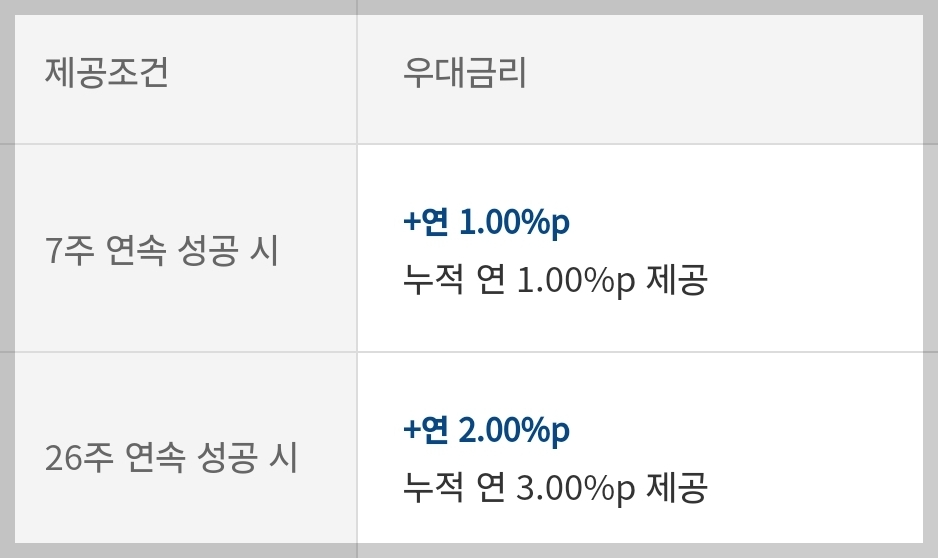 - 주차별 자동이체 납입을 연속 성공하고, 만기 해지한 경우 최대 연 3.00% (2024년08월14일 기준)