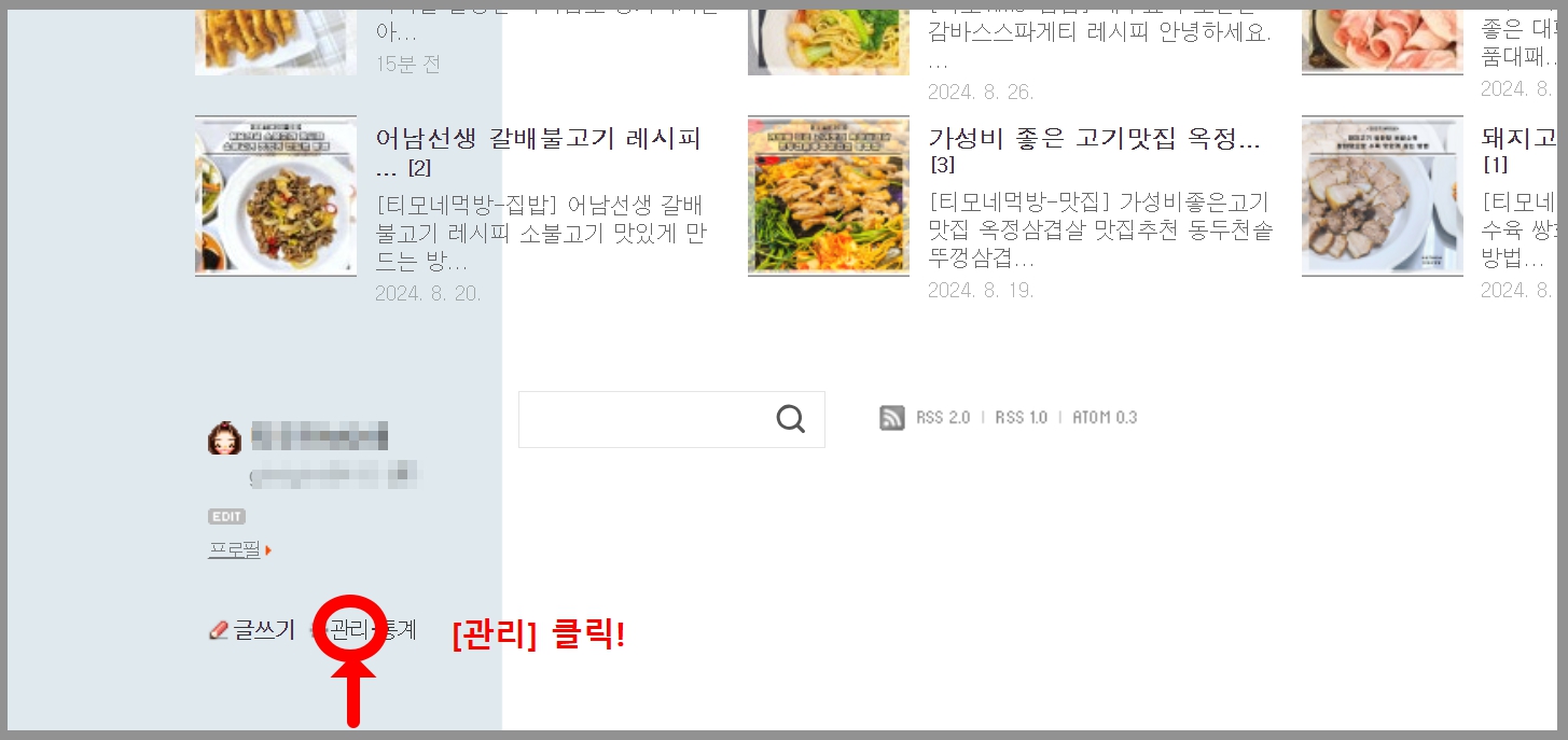 내블로그 페이지에 프로필 있죠? 프로필 바로 밑에 보시면 [관리]가 보이실거예요.