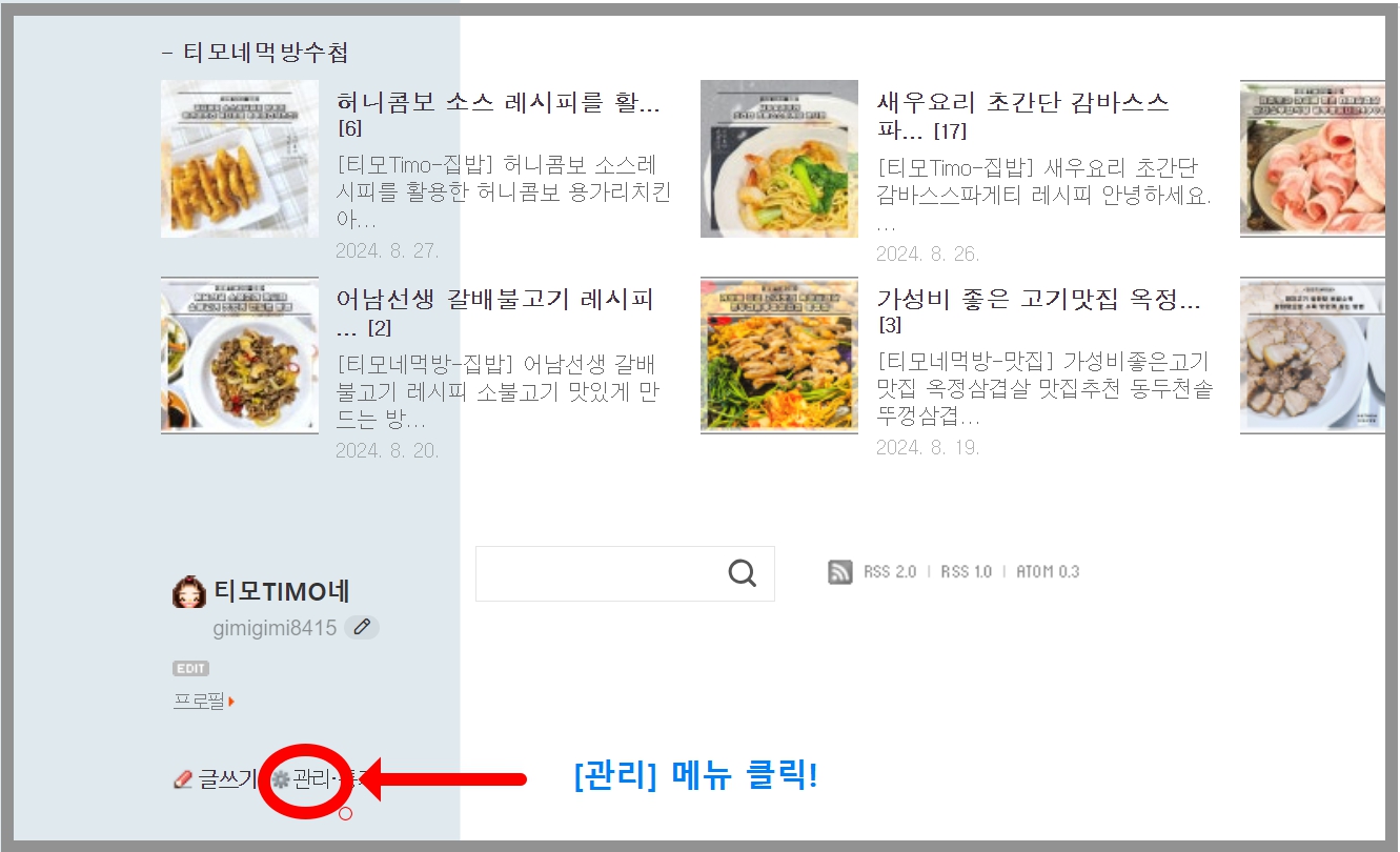 - 내 블로그 프로필 밑에 [관리]메뉴 클릭해 주세요.