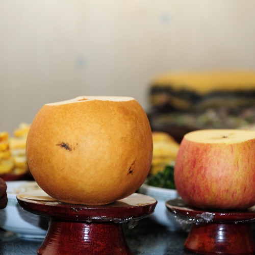 - 조상님들께 드리는 과일은 홀수로 두는 것이 기본입니다. 우리가 제사를 지낼때 제사상차림만 보아도 알수 있습니다. 이는 조상님께 복을 달라고 비는 의미인데요. 홀수는 양기를 의미하는데 음의 세계에 계신 조상님들께 양기를 드려 음양의 조화를 이뤄 앞날이 트이게 하는 것이지요.