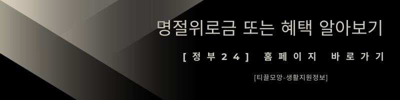 오늘은 기초생활수급자 분들은 위해 마련된 정부지원금 중 명절위로금에 대해 포스팅을 해보았는데요. 돌아오는 추석 모두가 따뜻하고 풍성한 명절 보내셨으면 합니다. 끝까지 읽어주셔서 감사드립니다.