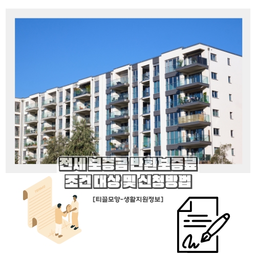 안녕하세요. 티끌모앙입니다. 전세 임대차 계약을 한 후 전세기간이 만료가 되면 전세보증금을 반환받아야 하는데요. 문제는 마땅히 받아야 하는 임차인의 전세보증금을 반환받지 못하는 상황이 많이 발생하고 있어 어려움을 호소하는 가정들이 많이 생겼습니다. 그래서 전세보증금 반환 보험을 가입하게 되는데 이 보험에 가입을 하게 되면, 보증금액과 기간에 따라 보증료라는게 발생하며, 이 비용은 고스란히 임차인이 전액 부담을 해야 합니다. 그래서 정부는 전세 임대차 계약을 한 임차인이 전제보증금 반환보험을 가입한 경우 보증 보험료를 일부 지원해 주는 사업을 실행하였습니다. 그래서 오늘은 서울특별시에서 지원하는 전세보증금반환보험에 가입되어 있는 임차인분들이 꼭 알아두면 좋은 보증보험료 정부지원사업에 대해 안내해 드리도록 하겠습니다.