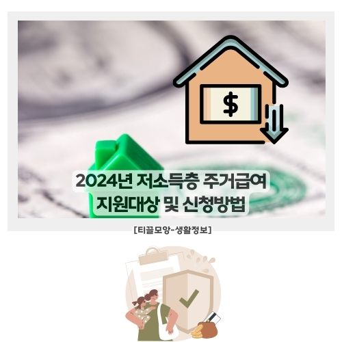 안녕하세요. 티끌모앙입니다. 오늘 소개해 드릴 저소득 주거급여지원이란 경제적으로 생활이 어려운 분들에게 주거의 안정을 위해 정부가 제공하는 기초생활보장 제도의 하나로 취약계층에 주거급여를 실시하여 주거비 부담을 완화하고 양질의 주거 수준의 향상을 도모하기 위한 복지 서비스입니다.