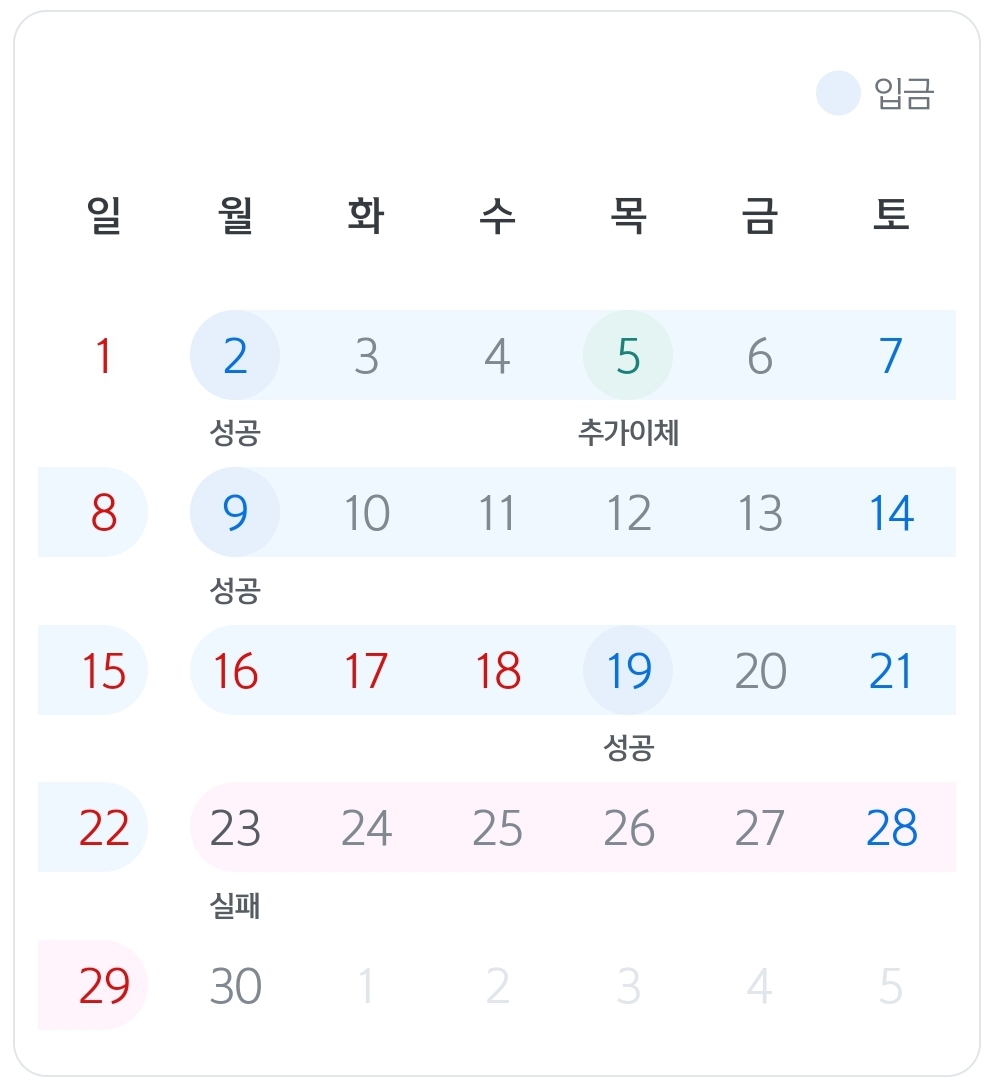 - (예시) 매주 월요일 자동이체일 때, 9월 3주차에는 추석연휴가 지나고 19일 목요일에 입금됩니다.