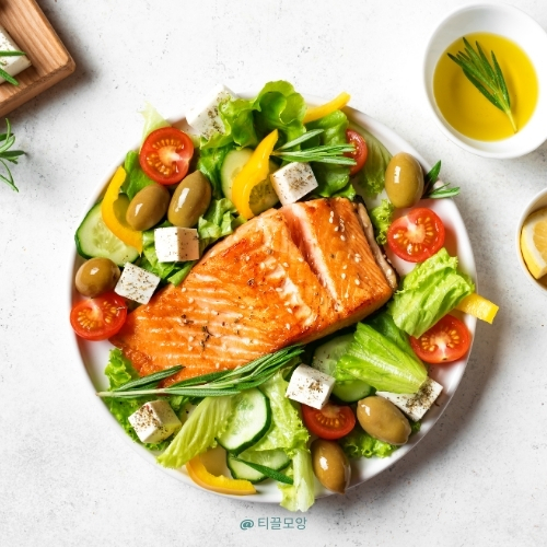 연어에는 EPA와 DHA 같은 오메가-3 지방산이 풍부하여 염증을 줄이고 심장 건강을 증진시켜줍니다.