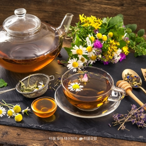 - 캐모마일 차 : 신경 안정 및 통증 완화에 효과적입니다
