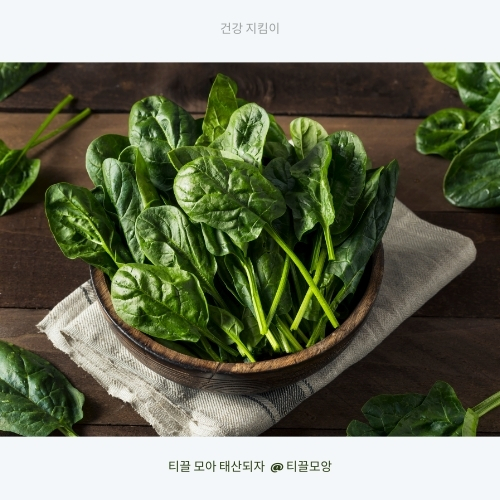효능 : 시금치에는 루테인과 제아잔틴이 들어있는데 이는 황반 보호와 노화 예방에 좋습니다.