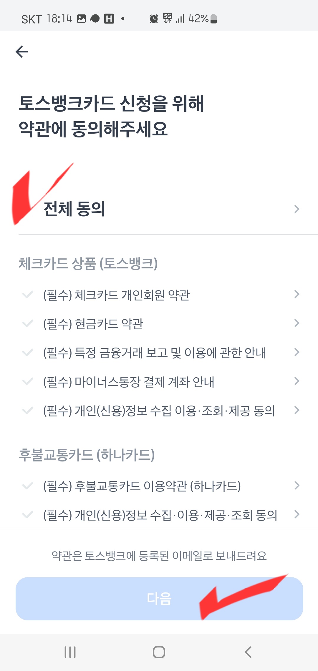 전체 동의 체크해주시고, 확인버튼 눌러주시면 됩니다.
