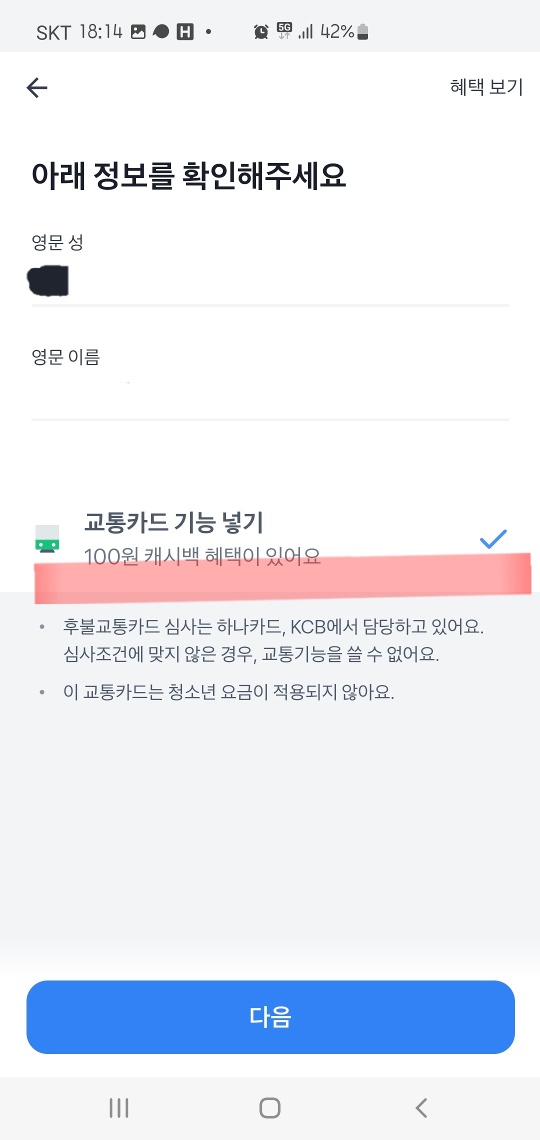 토스뱅크 통장까지 만드셨다면 "토스 체크 카드만들기" 페이지 나오실 텐데요.