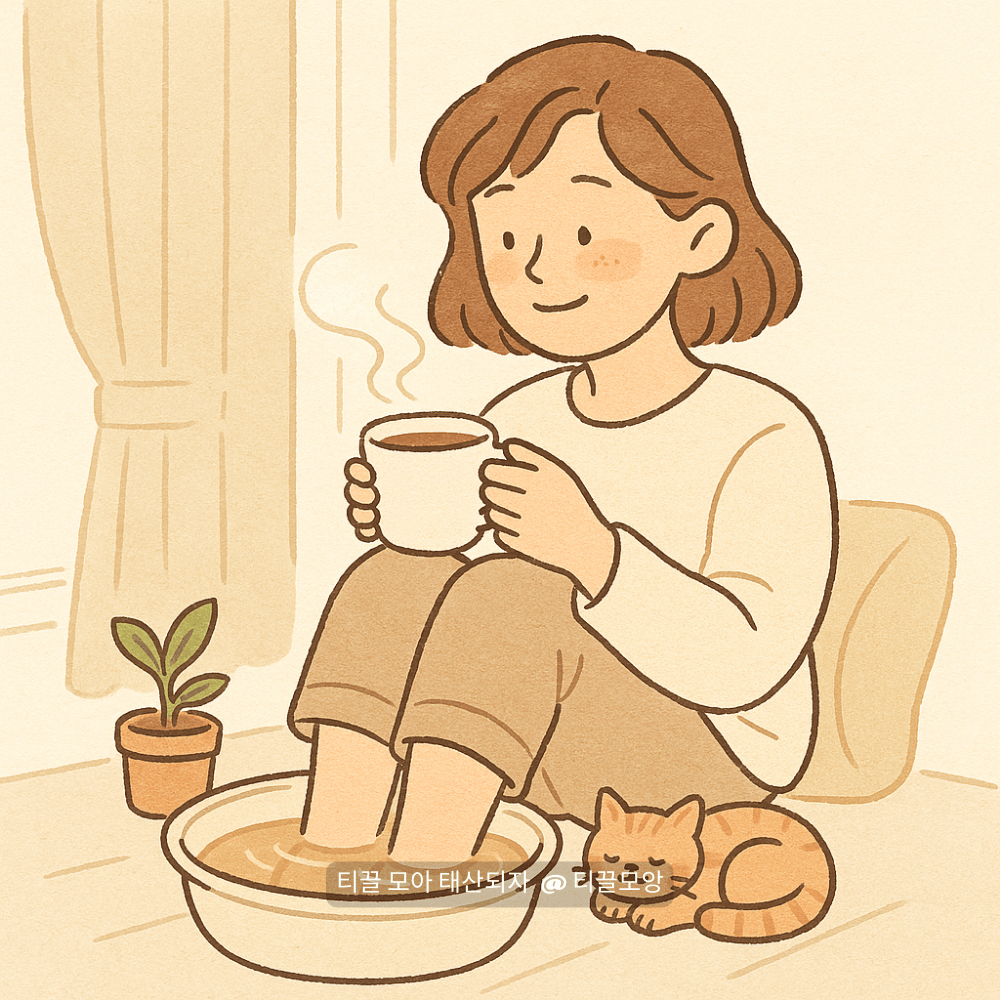 - 복부와 발 따뜻하게 하기 : 장과 자궁이 위치한 복부, 그리고 발은 체온 유지에 중요한 부위이므로 온찜질이나 수면양말, 복대 등을 활용하세요.