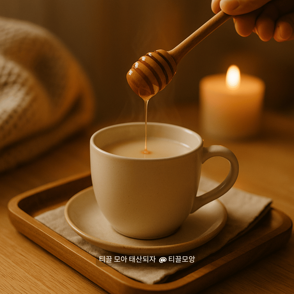 꿀 한 스푼을 따뜻한 우유나 허브차에 섞어 마시는 방법을 추천드립니다.