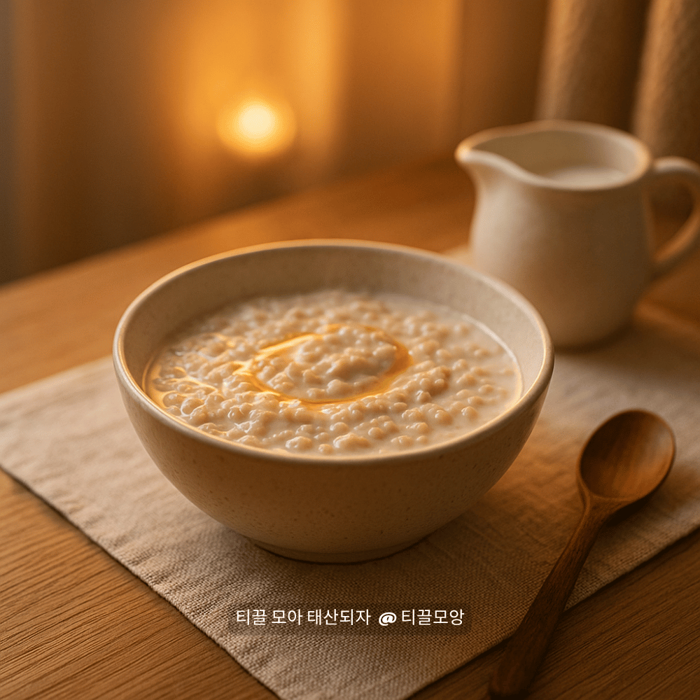 우유와 귀리를 함께 끓여 간단한 오트밀을 만들어 섭취하시면 수면에 도움이 됩니다.