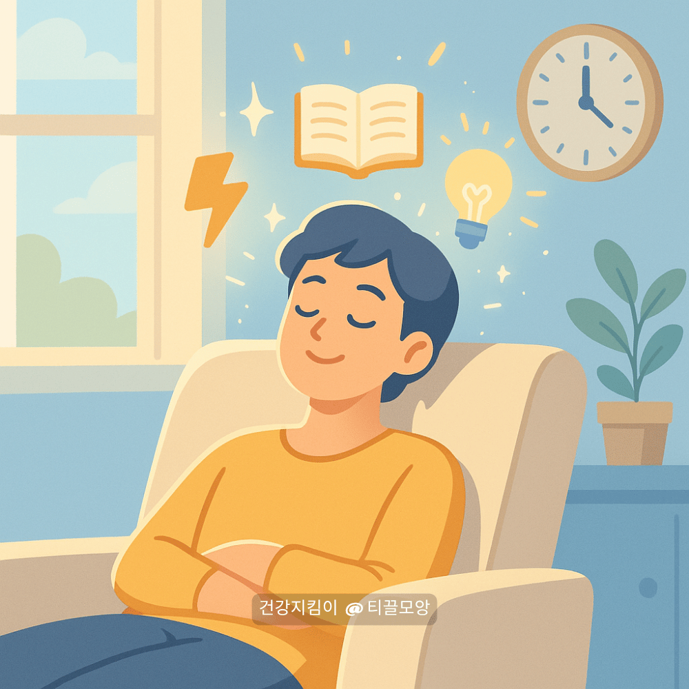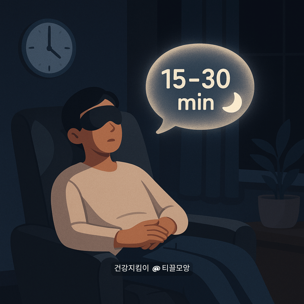 - 시간은 15~30분 이내로 제한하세요. 너무 오래 자면 오히려 피로감이 증가하고 밤잠에도 영향을 줍니다.