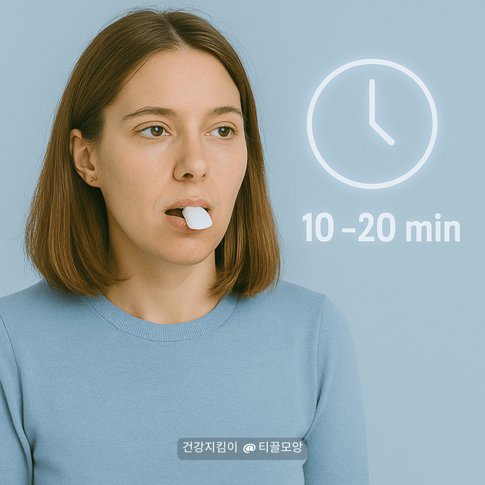 식후 10~20분 정도 씹는 것이 가장 효과적이며, 과도한 씹기는 턱관절에 무리를 줄 수 있어요.