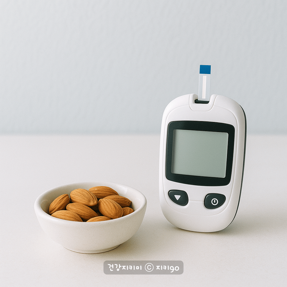 아몬드는 혈당 지수를 낮추는 식품으로 알려져 있습니다. 식이섬유와 단백질이 혈당 상승을 완만하게 조절해 주어 식후 혈당 급등을 막아줄 수 있는데요. 꾸준히 섭취해주시면 인슐린 저항성을 개선해 주어 당뇨병 관리에 긍정적인 역할을 할 수 있어요. 그리고 당분이 많은 간식 대신 아몬드를 선택하신다면 건강 관리에 훨씬 유리하답니다.