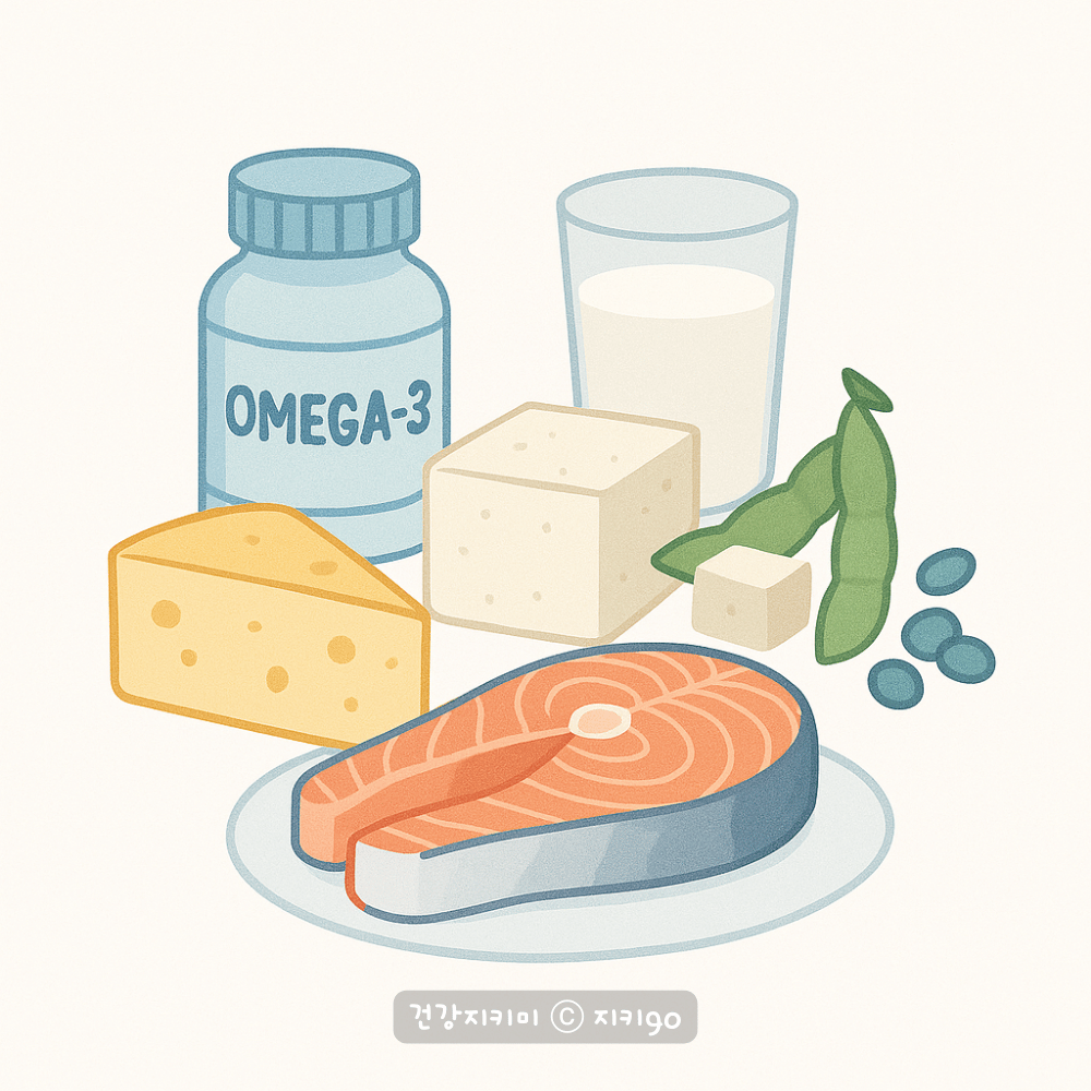 칼슘, 비타민 D, 오메가3, 콩 이소플라본이 풍부한 식품은 호르몬 균형을 돕습니다.