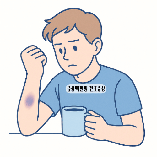 단순히 "피부가 약해서" 생기는 멍과 달리, 급성 백혈병에서 나타나는 멍은 다양한 부위에서 반복적으로, 이유 없이 발생하는 특징이 있습니다. 만약 팔, 다리 뿐만 아니라 몸 전체에 멍이 잦다면 반드시 주의 깊게 살펴보셔야 해요.