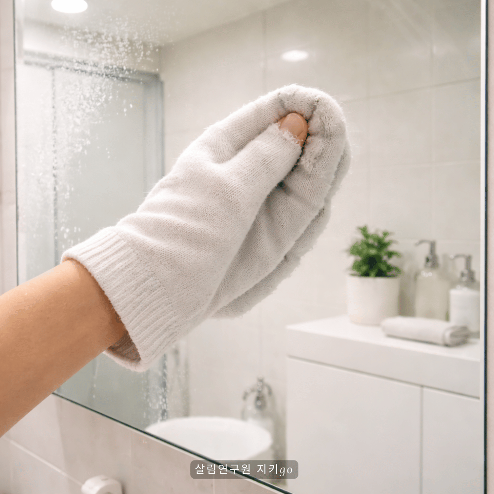 쓰지 않는 양말을 유리나 스테인리스 닦는 용도로 활용해 보시기 바래요. 거울이나, 수도꼭지, 냉장고 문을 닦아보시면 물자국이나 지문자국을 깔끔하게 제거할 수 있어요.