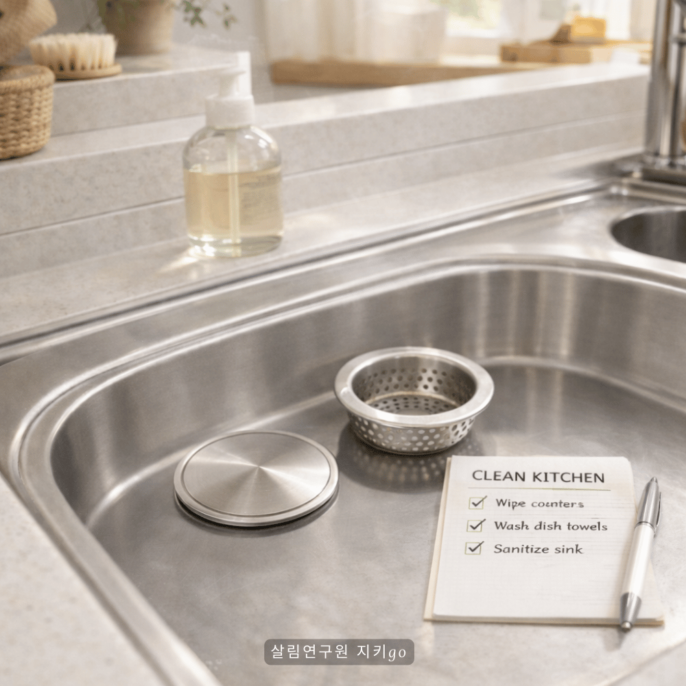 싱크대 배수구 냄새는 대부분 복잡한 문제라기보다 관리의 문제입니다. 베이킹소다와 식초 그리고 뜨거운 물만 있어도 배수구 내부를 충분히 관리할 수 있습니다. 여기에 거름망 청소와 간단한 생활습관까지 더하면 주방 냄새 문제는 훨씬 줄어듭니다. 특별히 세제를 사용하지 않아도 기본적인 관리만으로도 깨끗하고 위생적인 주방 환경을 만들 수 있습니다. 오늘 한 번만 실천해 보셔도 싱크대 냄새가 훨씬 줄어든 것을 체감하실 수 있을 것입니다.
